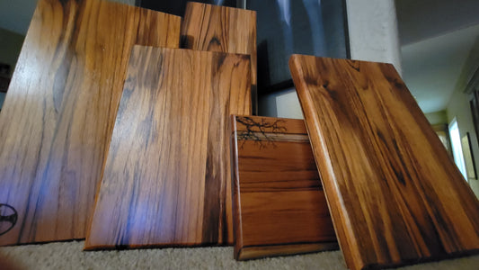 Cutting boards from our collection are made to order with a variety of options. The boards are handmade with dedication and love, resulting in a uniquely crafted, high-quality product. Enjoy precise cutting with these boards that are built with patience and passion. We currently use Walnut, Teak and Zebra wood for a unique exotic look and feel.